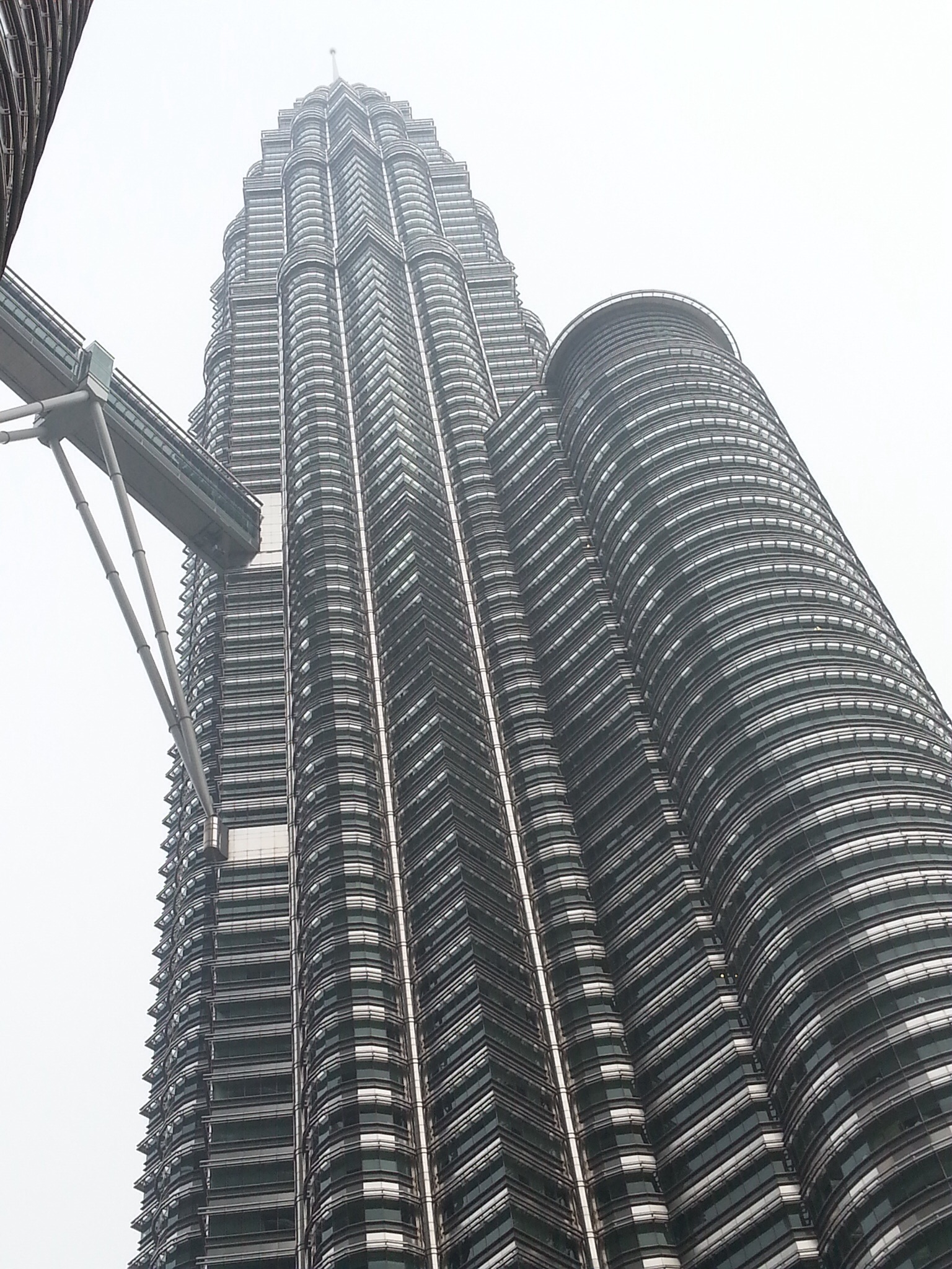 Just to prove it, here’s (one of) the twin Petronas Towers, iconic centre of Kuala Lumpur. We waited for the photo – when we arrived the Towers were shrouded by the ‘Haze’, the pollution blamed on Indonesian plantation owners burning down forest to plant palms for oil… Today, though, we had a terrific tropical downpour. The TV stopped working for a while, showing only “it is currently raining, service is disrupted”, but in recompense the Haze cleared and the Towers appeared…